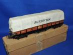 Märklin huifwagen 393 van blik (versie uit 1949): - amerikaans gegoten draaistellen met beugelkoppelingen bk 4.2 - Dekzeil met lic Lees meer...