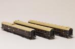 De set bevat: een locomotief en twee wagons. De 3 kratten zijn in goede staat. Een van de twee wagons mist een as. De locomotief w Lees meer...