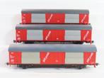 Roco h0 - 4387a - goederenwagon - 3 postwagens van de ptt type hbbkkss - ns 3x 4387a postwagen van de ptt met rode kopwand, " Lees meer...