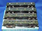 Vier plaatstalen personenwagens 4037: - lengte per stuk 22 cm - relex koppelingen bk 7 - binnenverlichting is bij twee auto's Lees meer...