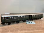 Marklin 43183 tweee ombouwwagens b3ygeb 2e klasse met telkens drie wielstellen. Vastgekoppelde dubbele wagen. Zoals in gebruik ron Lees meer...
