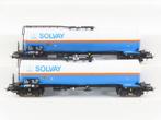 Van biervliet h0 - vb-81901 - goederenwagenset - 2 vier-assige ketelwagen solvay - sncb nmbs set met twee knikketelwagens type m67 Lees meer...