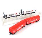 Quatre wagons bâchés 'logserv' les deux ensembles sont en parfait état, complets avec leur emballage d'origine. 1 X 83 Lees meer...