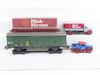 Märklin h0 - 48112/46820 - goederenwagon - 2x 2-delige goederenwagen-set met o.a. Rongenwagen met huif en vrachtauto met opdruk &q Lees meer...