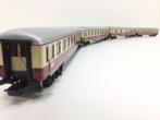 4 rijtuigen in metalen uitvoering, 4 assen, beige/rood, 1 is voorzien van binnenverlichting en sluitlichten. 2X 4085 tee coupé rij Lees meer...