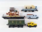 3 goederenwagons met 1 losse krat en 1 vliegtuig bestaand uit 3 delen. 3 Platte wagens van de deutsche reichsbahn gesellschaft (dr Lees meer...