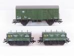 1601. 3 Diversen h0 märklin wagons. Platte wagen met 4 assen beladen met hout - 4514.02./Lot73 platte wagen met rongen - 4516.01./ Lees meer...