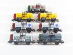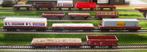 Kavel bestaande uit 13 laagzijdige en hoogzijdige goederenwagons met verschillende ladingen compleet met haken, assen en buffers d Lees meer...