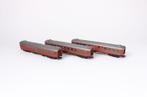 Drie zweedse rijtuigen in de originele bruine kleurstelling. Het gaat om twee tweede klas en één buffetrijtuig. In goede tot zeer Lees meer...