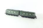 Twee fraai gedetailleerde rijtuigen met binnen-inrichting en enkele inzittenden. 2E klasse met kort-koppelingen nem-schacht. Uitga Lees meer...