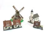Faller, piko h0 - b231/61825/61826/131243 - paysage - moulin à vent, église et 3 maisons. Faller b231 - moulin à vent. Avec emball Lees meer...
