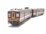 Elektrisch treinstel van de belgische spoorwegen (nmbs) type am66 in bekende bordeaux kleurstelling met gele/witte sierbelijning. Lees meer...