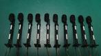 Zelfbouw h0 - 10 lichtseinen nl groen/geel/rood, rechts 10 metalen (koper) nederlandse lichtseinen met kunststof voetje en trapje. Lees meer...