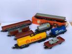 Een verzameling goederenwagons van de deutsche bundesbahn. Een lange lage bakwagon heeft de originele verpakking, welke een klep m Lees meer...