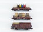 Brawa h0 - 48433/49350 - goederenwagon 2x 49350 - twee assige lage bak wagen type xr 35 met lading 1x 48433 - twee assige open bak Lees meer...