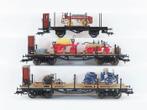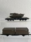 Acht lageboordwagens met legervoertuigen als ladingen. Goede staat, zonder originele verpakkingen. Koppelingen wijken deels af. Ve Lees meer...