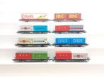 Ensemble d'un total de 8 wagons porte-conteneurs de la deutsche bundesbahn (db). ÉDitions de lima avec essieux et roues en mét Lees meer...