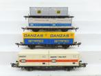Fleischmann h0 - 5233/5234 - goederenwagon - 4x 2-assige containerdraagwagens met lading met opdruk van o.a. "danzas" - Lees meer...