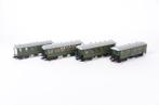 Vier verschillende 2e/3e klas/ bagage rijtuigen in de drg uitvoering. De rijtuigen zelf verkeren nog bijna in nieuwstaat (1 trappe Lees meer...