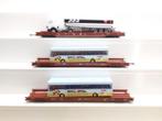 Geheel van drie stuks lagevloer wagens type saadkms van de deutsche bundesbahn (db). Wagens voor de 'rollende landstraße' Lees meer...