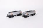 Twee identieke zilverkleurige shell ketelwagens van de bataafse petroleum maatschappij installatie te rotterdam. Tijdperk iii. Nog Lees meer...